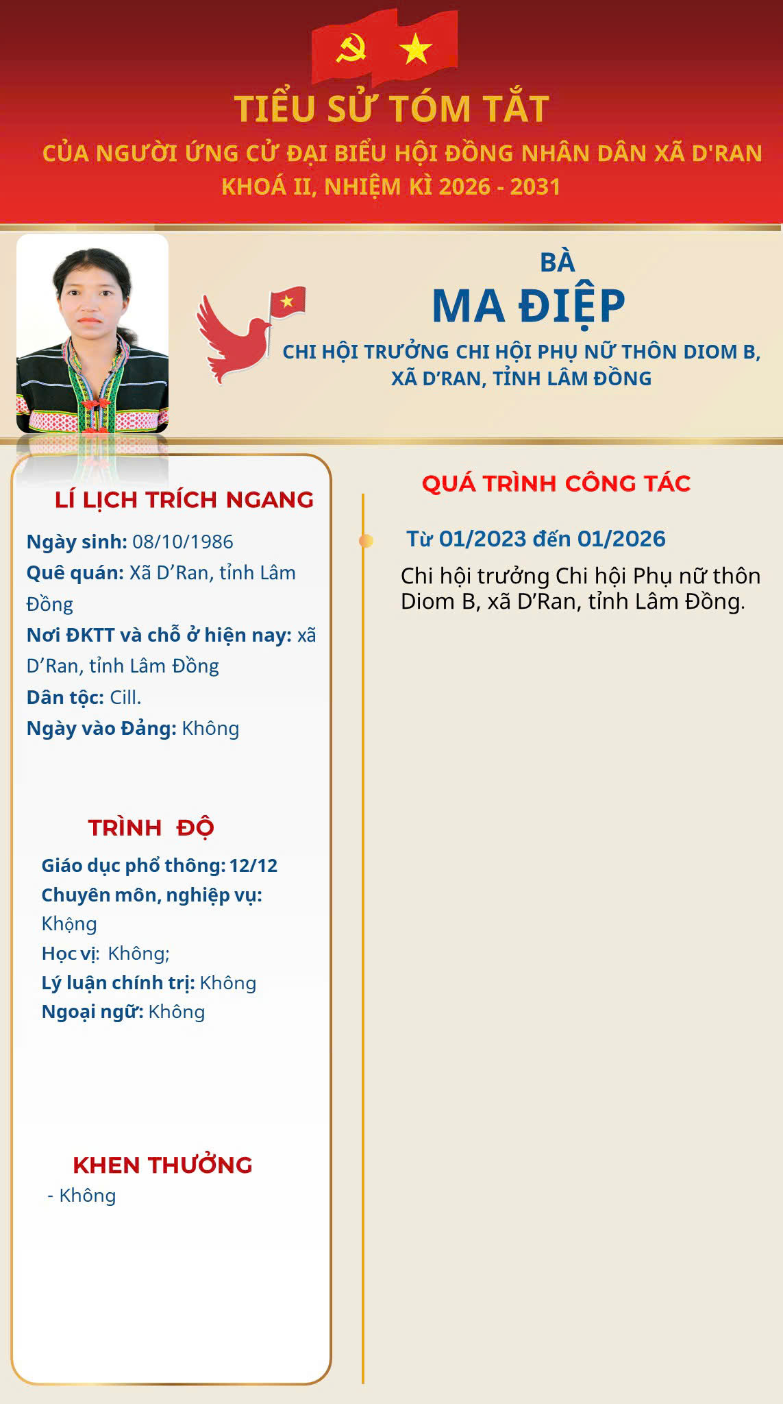 TÓM TẮT TIỂU SỬ BÀ HUỲNH LÝ THỊ ĐIỆP