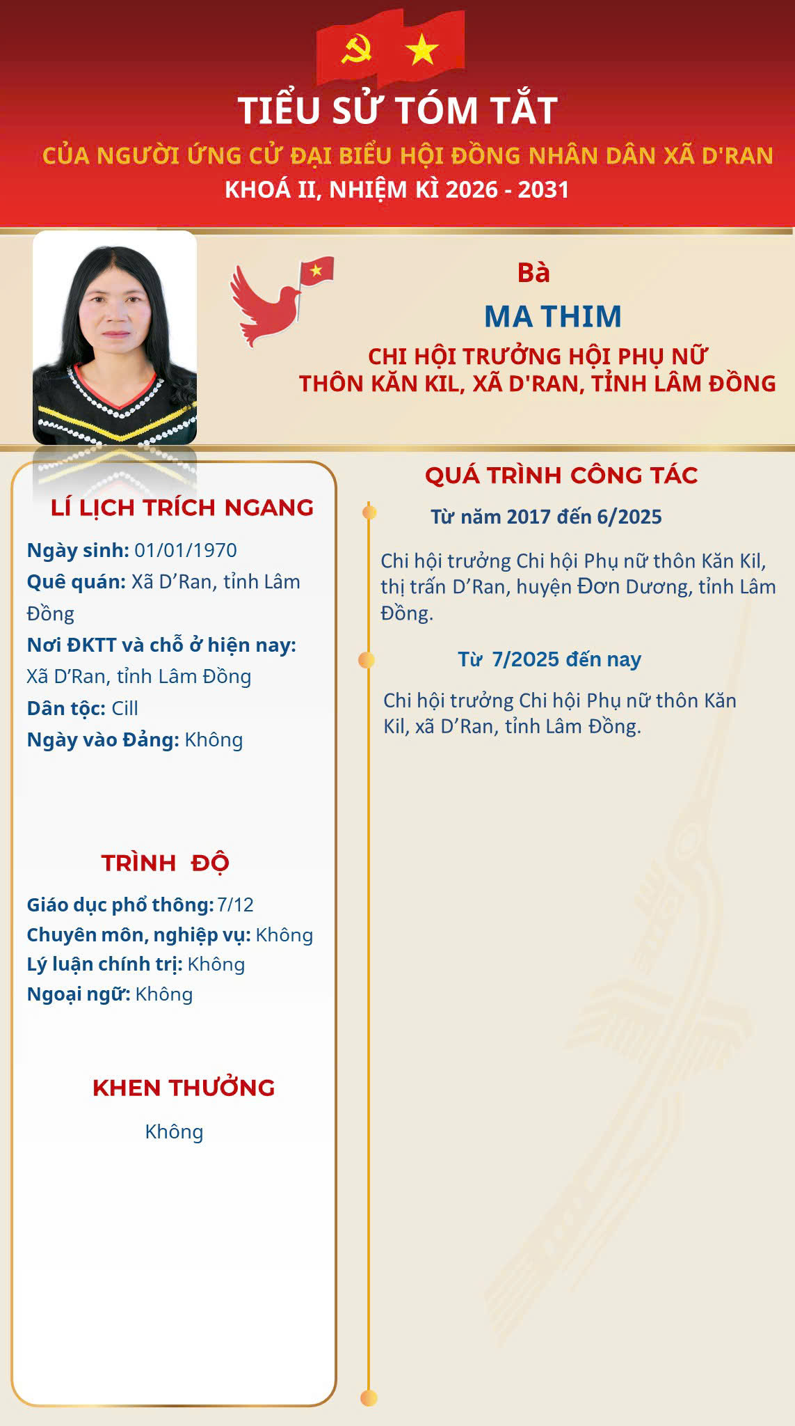 NGHỊ QUYẾT XÁC NHẬN TƯ CÁCH ĐẠI BIỂU HĐND XÃ D'RAN KHÓA II, NHIỆM KỲ 2026 - 2031